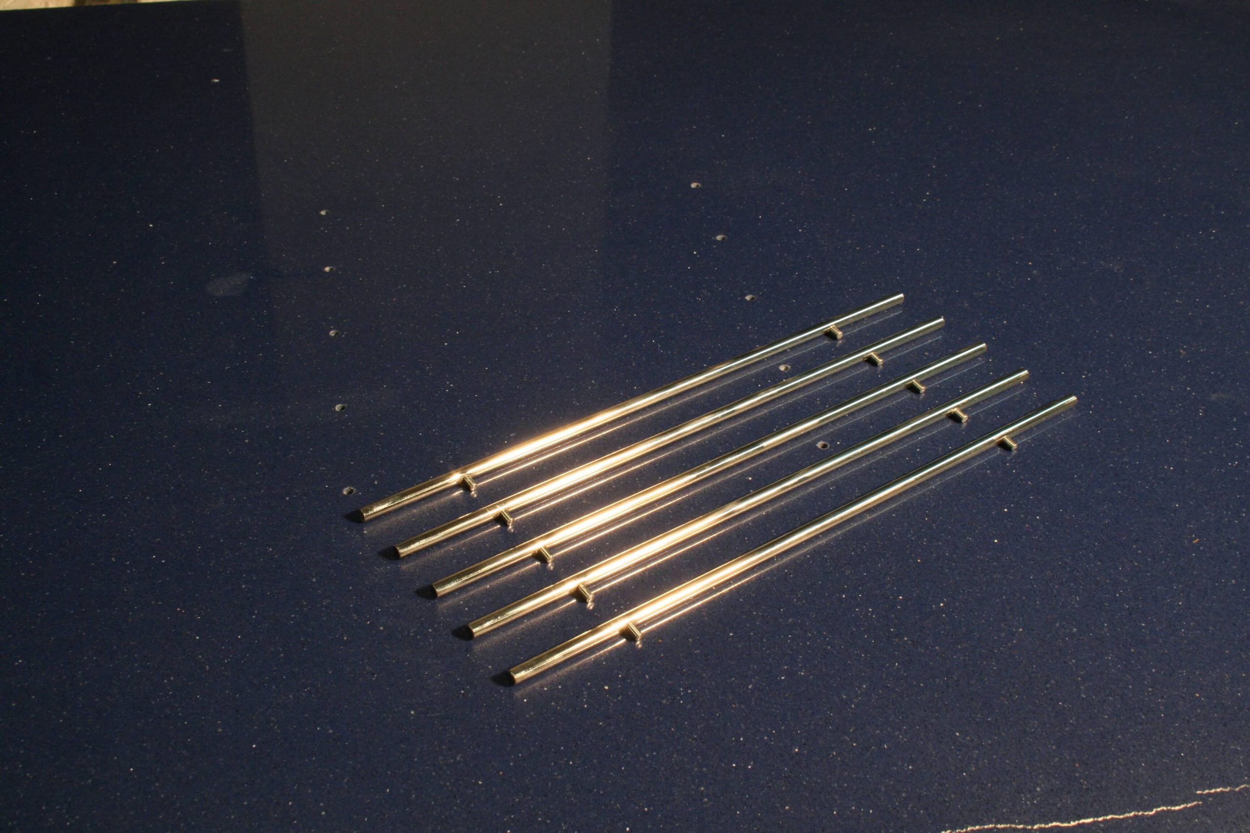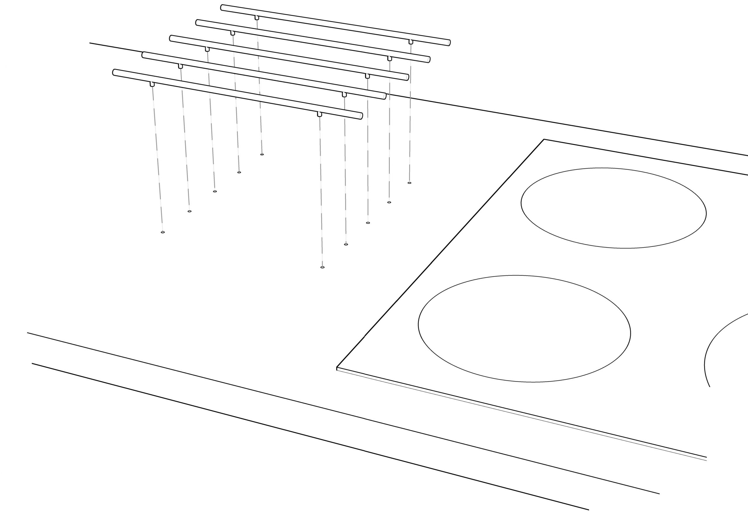 El protector de encimera PE-V, está compuesto por 5 varilla de acero inoxidable pulido de 250×5 mm. provistas de 2 pitones de 4×3 mm. Se instala realizando unos simples taladros de 4 mm. de profundidad y 3 mm de diámetro. Al igual que el modelo PE-P, no necesita ser pegado.